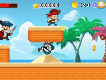 Jake vs Pirate Run je vznemirljiva tekaška igra, v kateri morate pomagati mlademu mornarju dokončati zahteven poligon z ovirami, medtem ko ga preganja zlobni pirat, ki mu hoče ukrasti zaklad. Med begom in soočanjem z vsemi vrstami smrtonosnih ovir in nevarnih sovražnikov, ne pozabite pogledati nazaj in se izogniti streljanju pirata. Zabavajte se in uživajte v resnično impresivni igri, medtem ko se trudite premagati vseh 5 ravni in dokončati misijo tako, da pomagate Jakeu doseči njegovo ladjo in odpluti stran od vseh groženj.